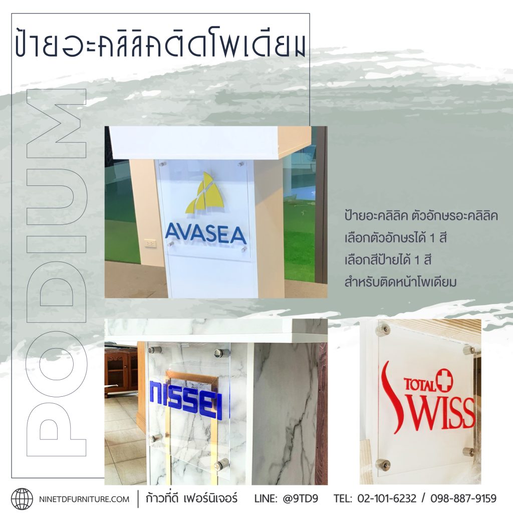 ได้ค่ะ สามารถทำได้ทั้งแบบ ป้ายอะคริลิก หรือสติ๊กเกอร์ติดหน้าโพเดียม