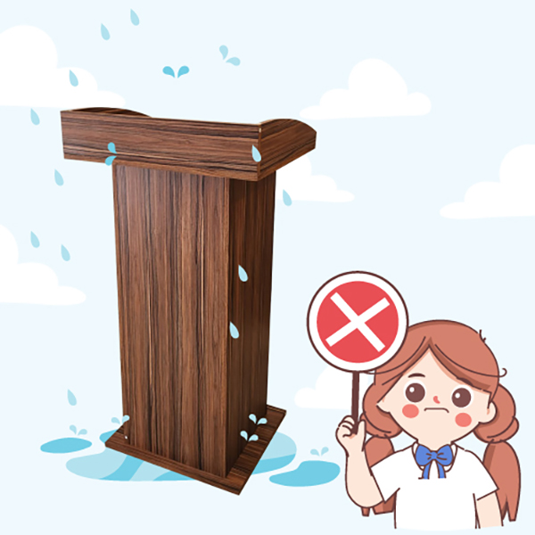 ข้อควรระวังในการใช้โพเดียม (podium) ไม้อัด: เรื่องน้ำและความชื้น
