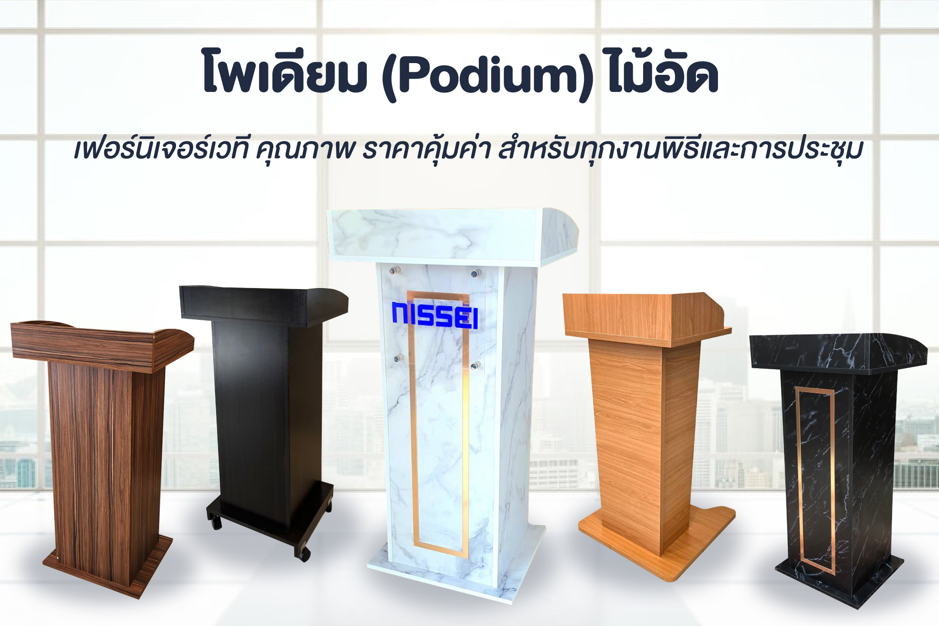 โพเดียม (podium) ไม้อัดมีราคาย่อมเยากว่าไม้จริง แต่ยังคงให้ความสวยงามและแข็งแรง จึงเหมาะกับโรงเรียน วัด หน่วยงาน หรือบริษัทที่ต้องการเฟอร์นิเจอร์คุณภาพดีในงบประมาณที่เข้าถึงได้