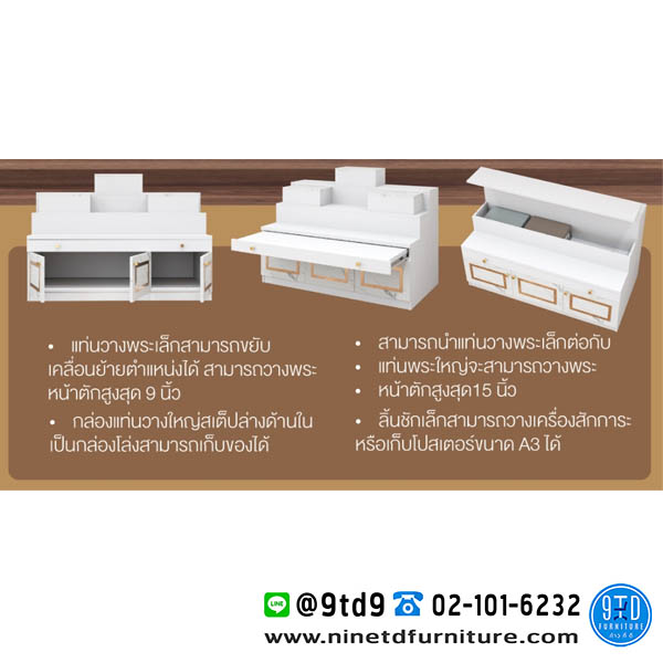 - ลิ้นชักเล็กสามารถวางเครื่องสักการะหรือเก็บโปสเตอร์ขนาด A3 ได้