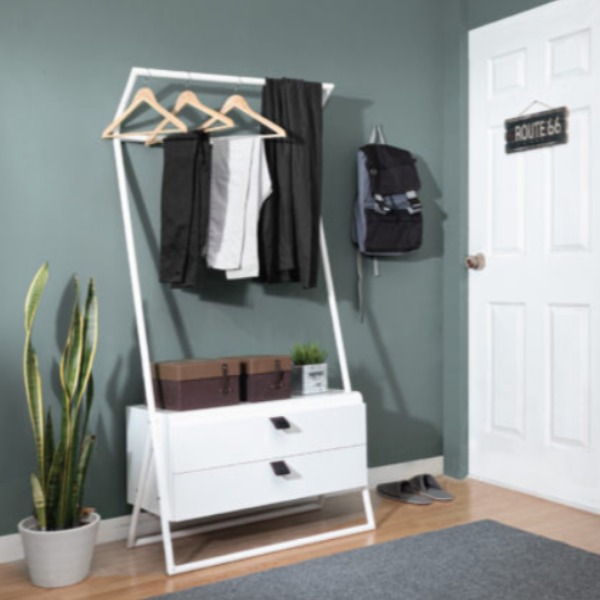 ตู้พร้อมราวแขวนและ2ลิ้นชัก (พื้นลิ้นชักมีรูระบายอากาศ)เหมาะกับวางรองเท้า หรือของทั่วไป
