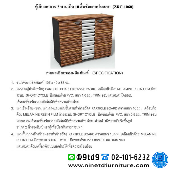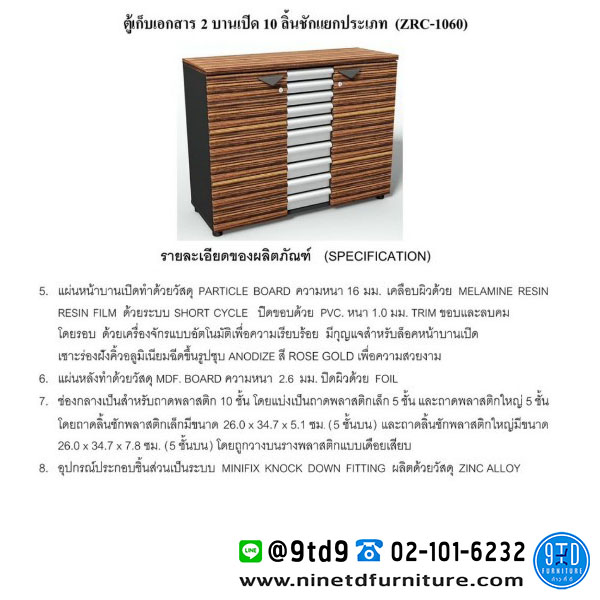ตู้เตี้ย 2 บานเปิด 10 ลิ้นชักแยกประเภท ZRC-1060