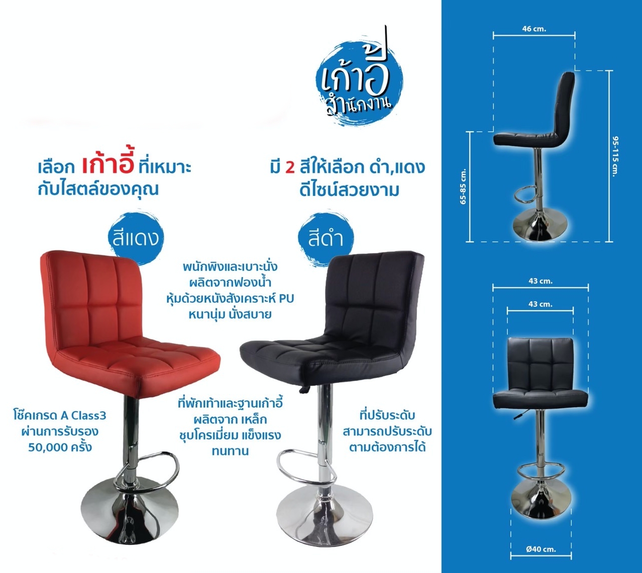- หากเก้าอี้ปรับระดับสูงสุด จะสูงถึง 113 CM.
