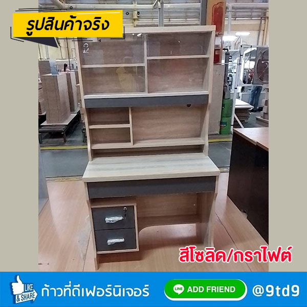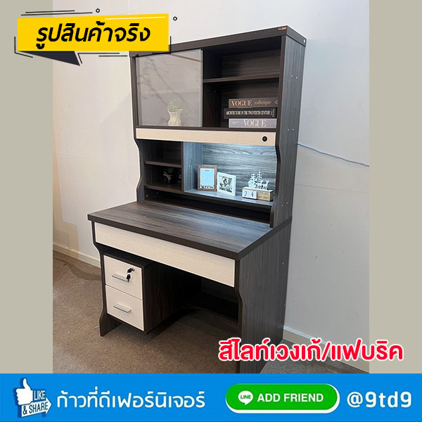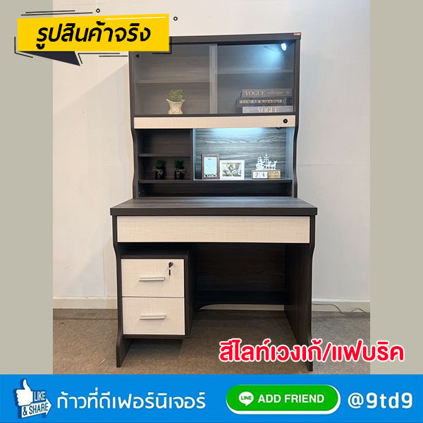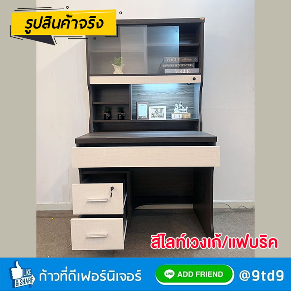 โต๊ะทำงาน 3 ลิ้นชัก พร้อมไฟอ่านหนังสือ และบานเลื่อนกระจก  สไตล์ Modern