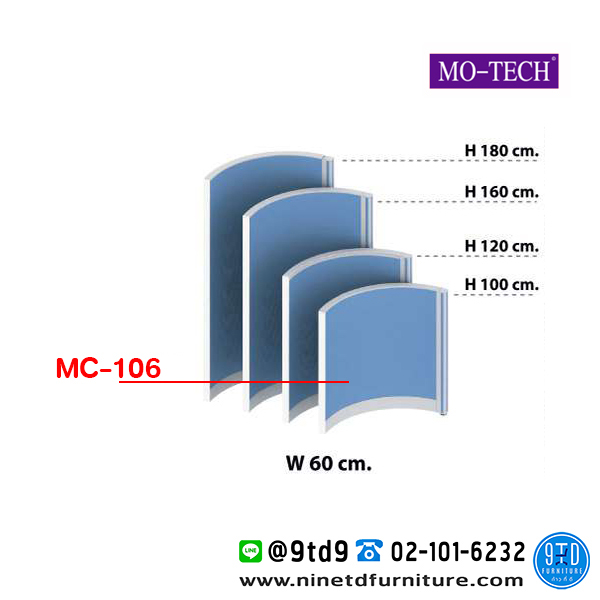 ฉากกั้นโค้งทึบ (มีกล่องร้อยสายไฟ) รุ่น MC-106/MC-206/MC-606/MC-806
