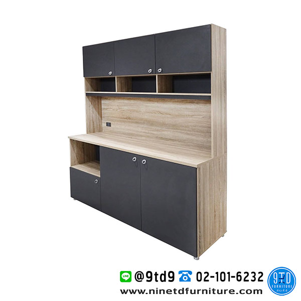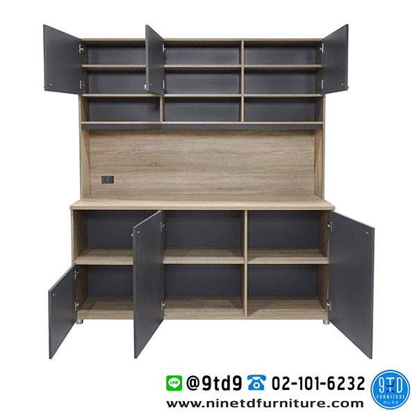 - ตัวโครง , หน้าบาน , แผ่นหลังล่าง ทำด้วยวัสดุ PARTICLE BOARD หนา 16 mm. เคลือบผิว MELAMINE RESIN FILM