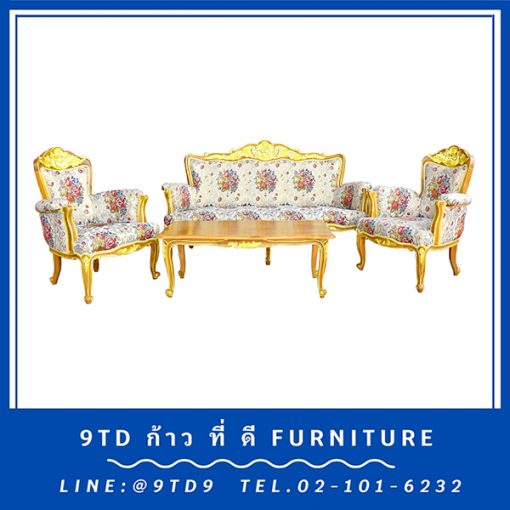 ชุดรับแขกหลุยส์อัจฉราสีธรรมชาติเดินทอง + โต๊ะกลางหลุยส์อัจฉรา