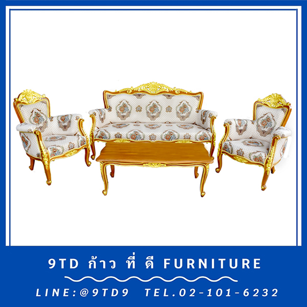 ชุดรับแขกหลุยส์โกเมนสีธรรมชาติเดินทอง + โต๊ะกลางหลุยส์อัจฉรา