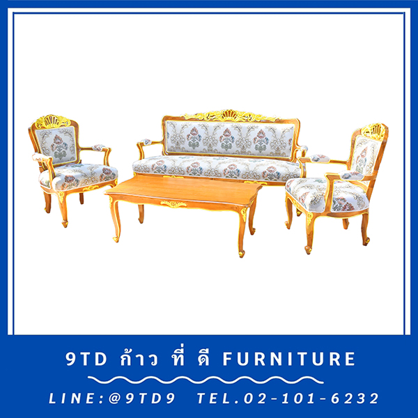 ชุดรับแขกหลุยส์โรสสีธรรมชาติเดินทอง + โต๊ะกลางหลุยส์โรส