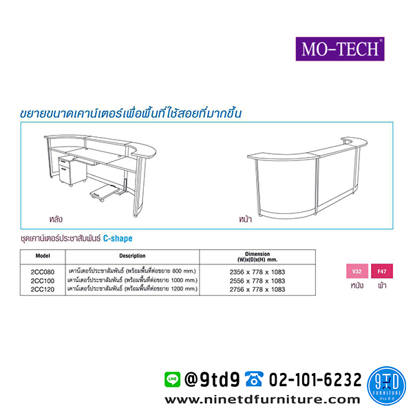 ชุดเคาน์เตอร์ประชาสัมพันธ์ C-Shape ต่อขยาย รุ่น 2CC120