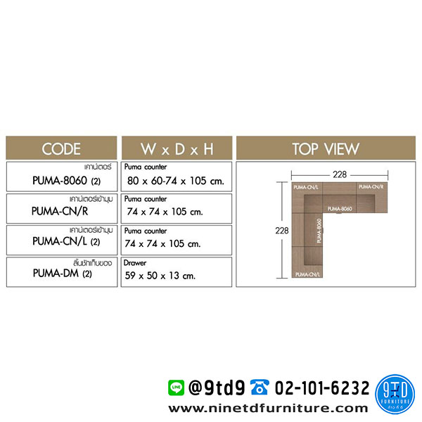 • เคาร์เตอร์ PUMA-8060 ขนาด W80 x D60-74 x H105 CM. จำนวน 2 ตัว