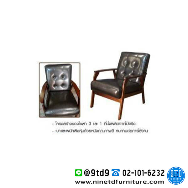 - โครงสร้างของโซฟา 3 และ 1 ที่นั่งผลิตจากไม้จริง