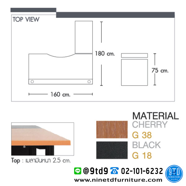 - โต๊ะต่อข้าง MNG 100 /R(แอลขวา) หรือ MNG 100 /L(แอลซ้าย) ขนาด : W100 x D40 x H75 CM. จำนวน 1 ตัว