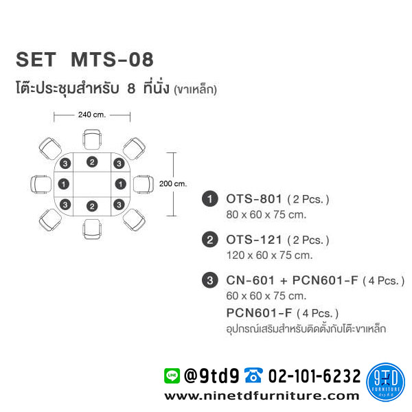 ชุดโต๊ะประชุมขาเหล็ก 8 ที่นั่ง ขนาด 240 CM รุ่น MTS-08