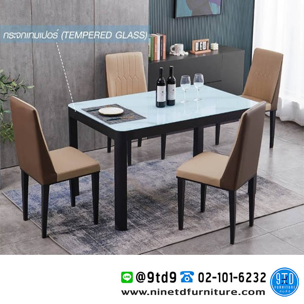 โครงโต๊ะเป็นไม้ยางพารา หน้าโต๊ะเป็นกระจกเทมเปอร์ - เก้าอี้ ขนาด : W44 x D50 x H89 CM. = 4 ตัว