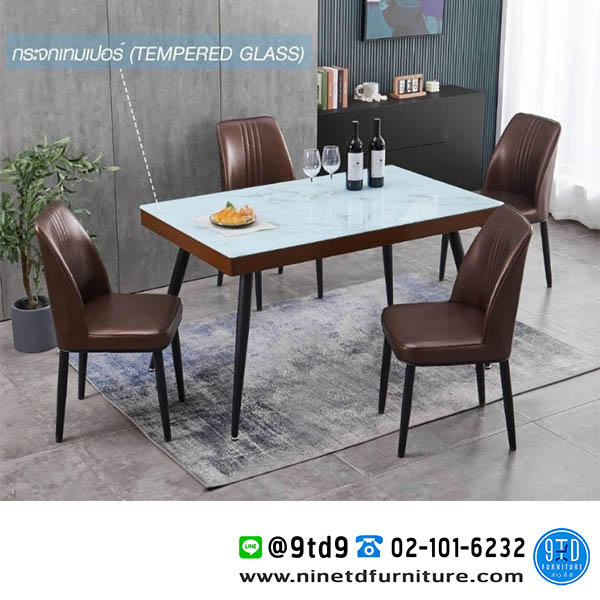 ชุดโต๊ะอาหารหน้าโต๊ะกระจกเทมเปอร์ 4 ที่นั่ง รุ่น นิวชูโรส