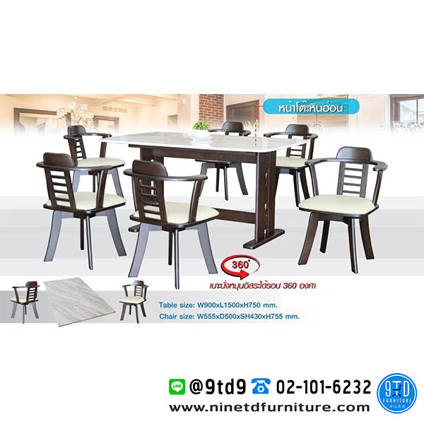 ชุดโต๊ะอาหารหน้าโต๊ะหินอ่อน เก้าอี้หมุน 6 ที่นั่ง รุ่น ฮาเนดะ (สินค้ายกเลิกผลิต)