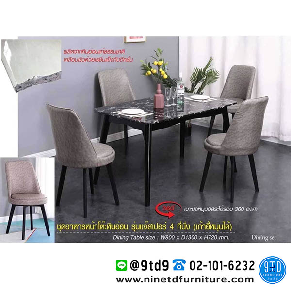 ชุดโต๊ะอาหารหน้าโต๊ะหินอ่อน เก้าอี้หมุน 4 ที่นั่ง รุ่น แจ๊สเปอร์