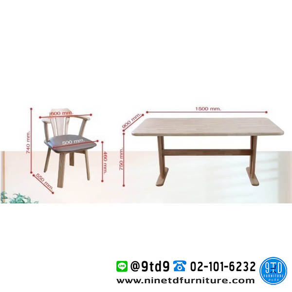 - โต๊ะอาหาร ขนาด : W90 x L150 x H75 CM. = 1 ตัว