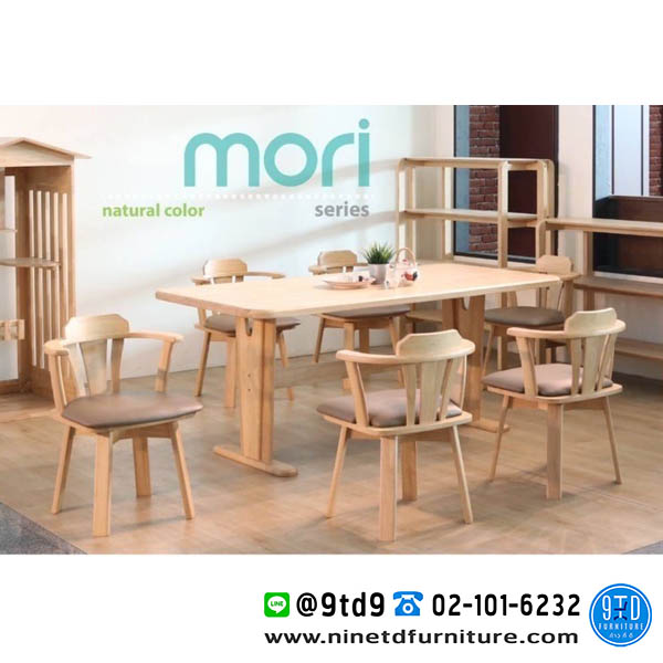 ชุดโต๊ะอาหารไม้จริง เก้าอี้หมุน 6 ที่นั่ง รุ่น โมริ