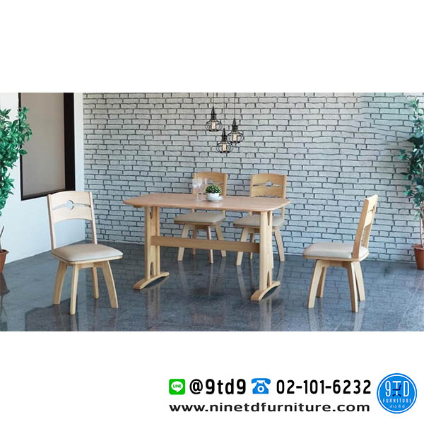 ชุดโต๊ะอาหารไม้จริง เก้าอี้หมุน 4 ที่นั่ง รุ่น สปันจ์