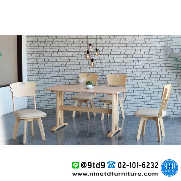 ชุดโต๊ะอาหารไม้จริง เก้าอี้หมุน 4 ที่นั่ง รุ่น บัตเตอร์