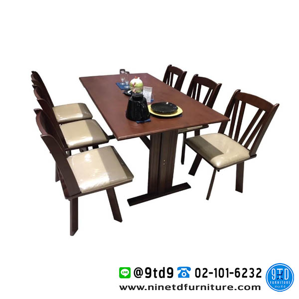 โครงโต๊ะเป็นไม้ยางพารา - เก้าอี้เบาะนั่งหมุนอิสระได้รอบ 360 องศา = 6 ตัว