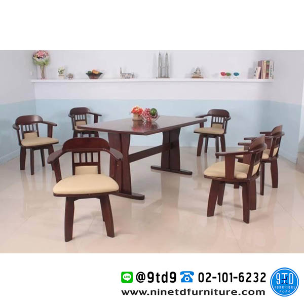 โครงโต๊ะเป็นไม้ยางพารา - เก้าอี้เบาะนั่งหมุนอิสระได้รอบ 360 องศา = 6 ตัว