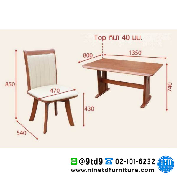 โครงโต๊ะเป็นไม้ยางพารา - เก้าอี้เบาะนั่งหมุนอิสระได้รอบ 360 องศา