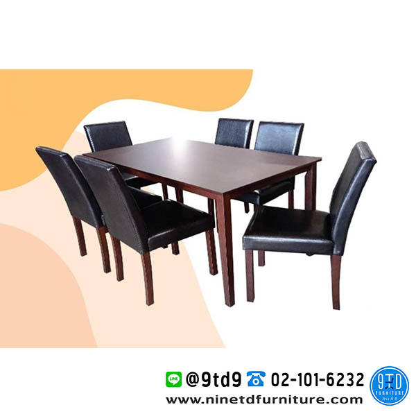 โครงโต๊ะเป็นไม้ยางพารา - เก้าอี้ ขนาด : W43.5 x D51.5 x SH46.5 x H90.5 CM. = 6 ตัว