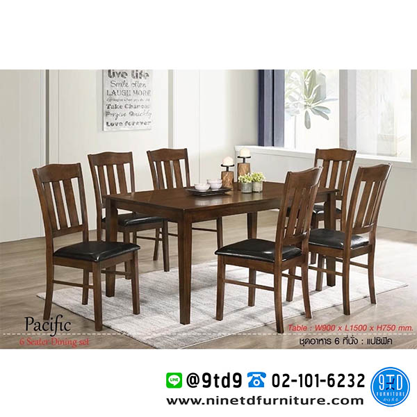 ชุดโต๊ะอาหารไม้จริง 6 ที่นั่ง รุ่น แปซิฟิก