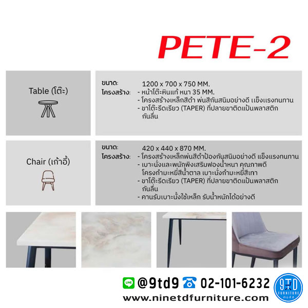 ชุดโต๊ะอาหาร 4 ที่นั่ง รุ่น พีท-ทู (Pete-2)