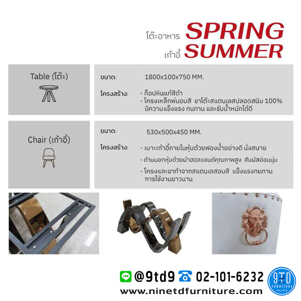 ชุดโต๊ะอาหาร 6 ที่นั่ง รุ่น สปริง+เก้าอี้ซัมเมอร์ (Spring+Summer)