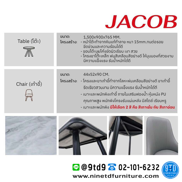ชุดโต๊ะอาหาร 6 ที่นั่ง รุ่น จาคอบ (Jacob)
