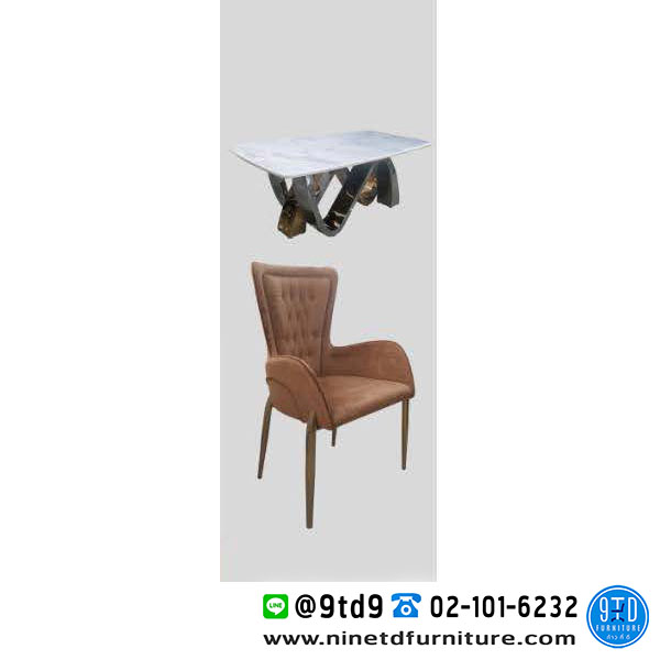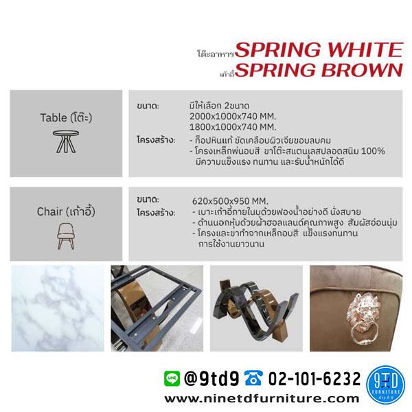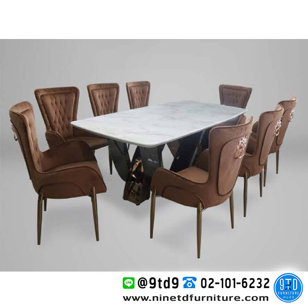 ชุดโต๊ะอาหาร 8 ที่นั่ง รุ่น สปริง ไวท์+เก้าอี้สปริง บราวน์ (Spring White+Summer Brown)