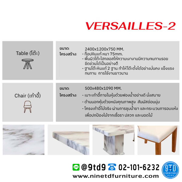 ชุดโต๊ะอาหาร 8 ที่นั่ง รุ่น แวร์ซาย-ทู (ฺVersailles-2)