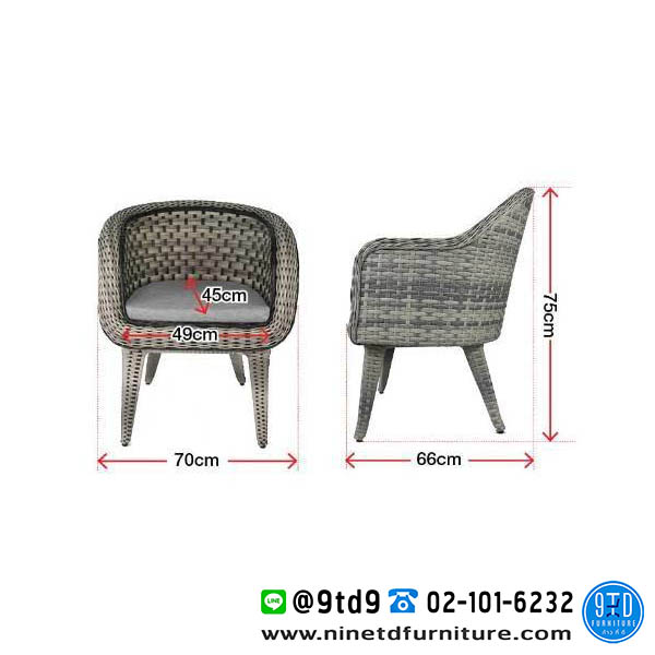 - โครงสร้างทำจากโลหะพันทับด้วยหวายสังเคราะห์ เหนียว ยืดหยุ่นสูง รับน้ำหนักได้เป็นอย่างดี งานถักสวยงาม ฝีมือปราณีต