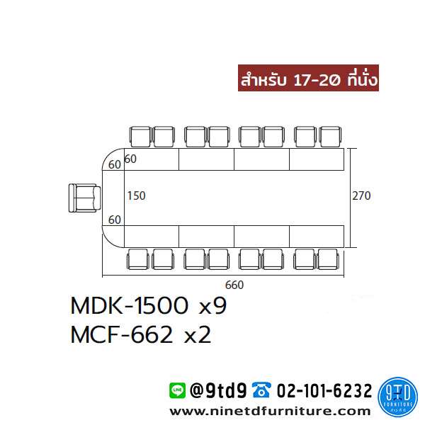ชุุดโต๊ะประชุม 17-20 ที่นั่ง MASTER SET 15 (W660xD270cm.)