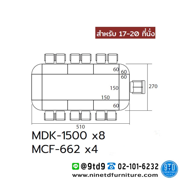 ชุุดโต๊ะประชุม 17-20 ที่นั่ง MASTER SET 11 (W510xD270cm.)