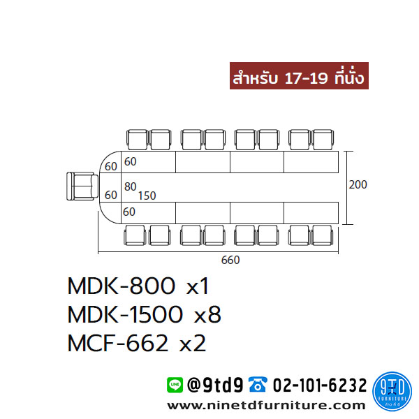 ชุุดโต๊ะประชุม 17-19 ที่นั่ง MASTER SET 16 (W660xD200cm.)