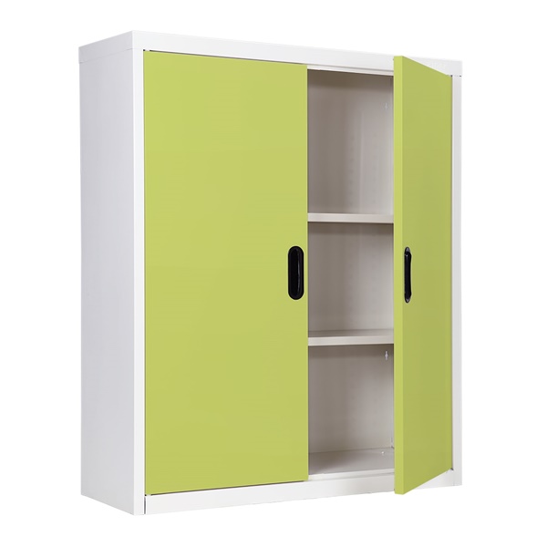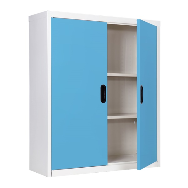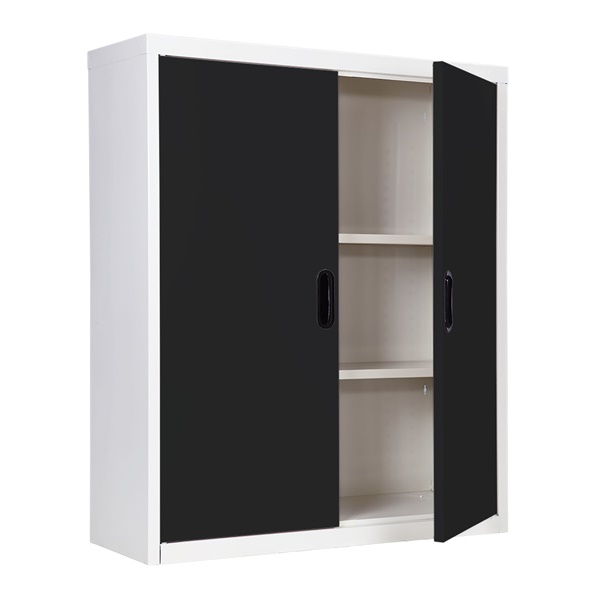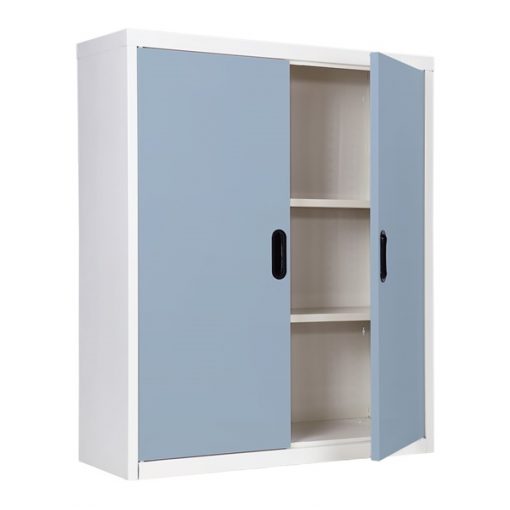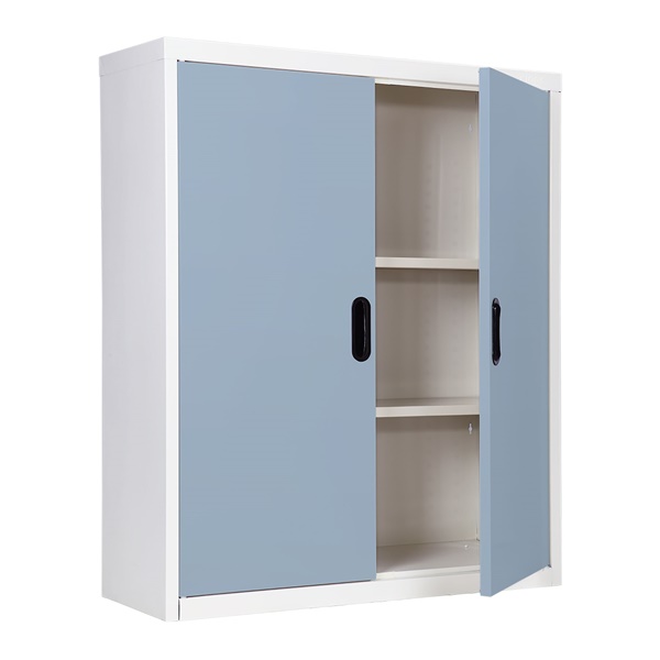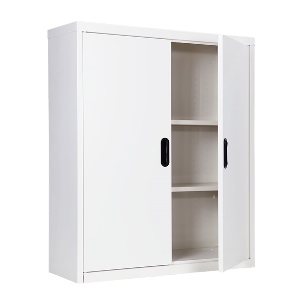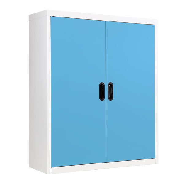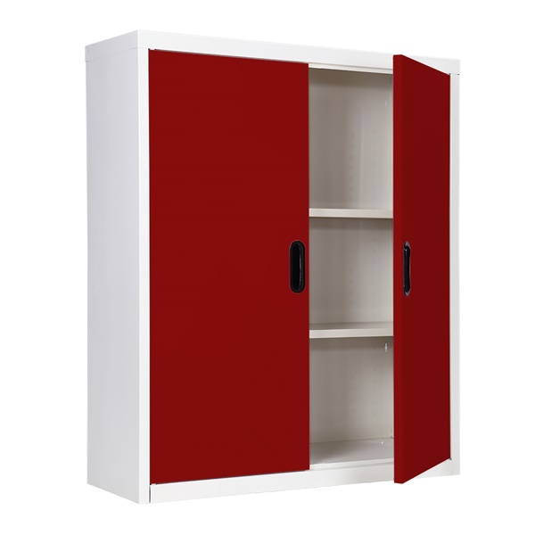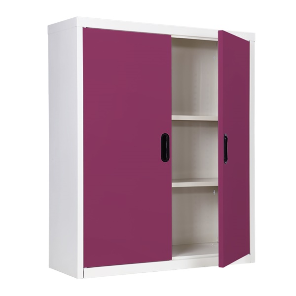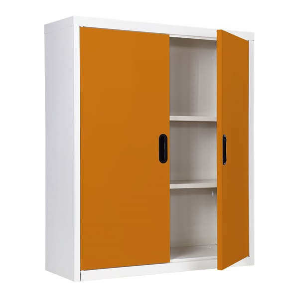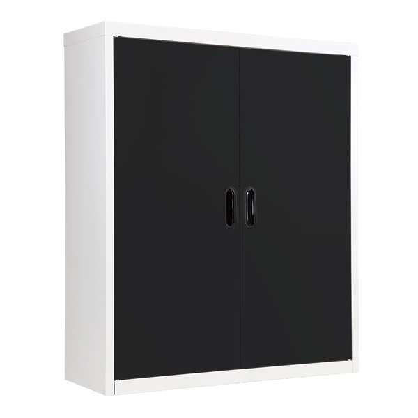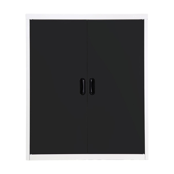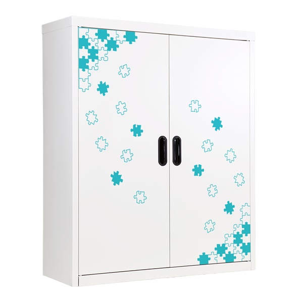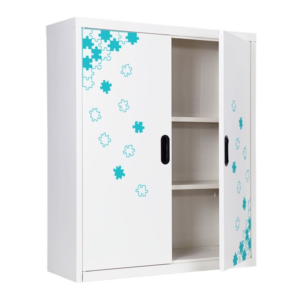 Half height steel door cabinet with 2 adjustable shelves and graphic available.