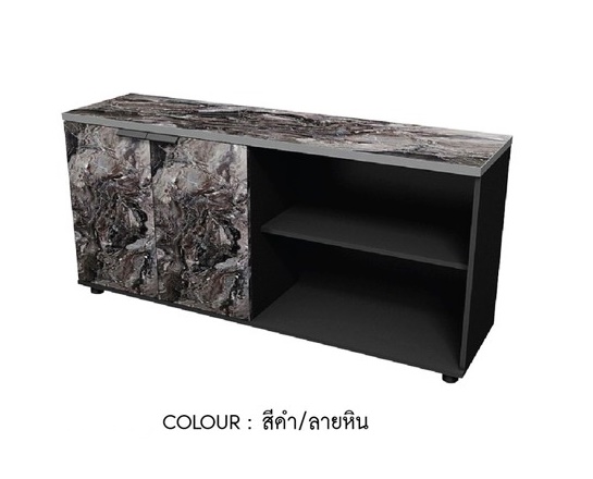 ตู้ต่อข้าง 2บานเปิด 2ชั้นโล่ง HBC-1540 (สีดำ/ลายหิน)