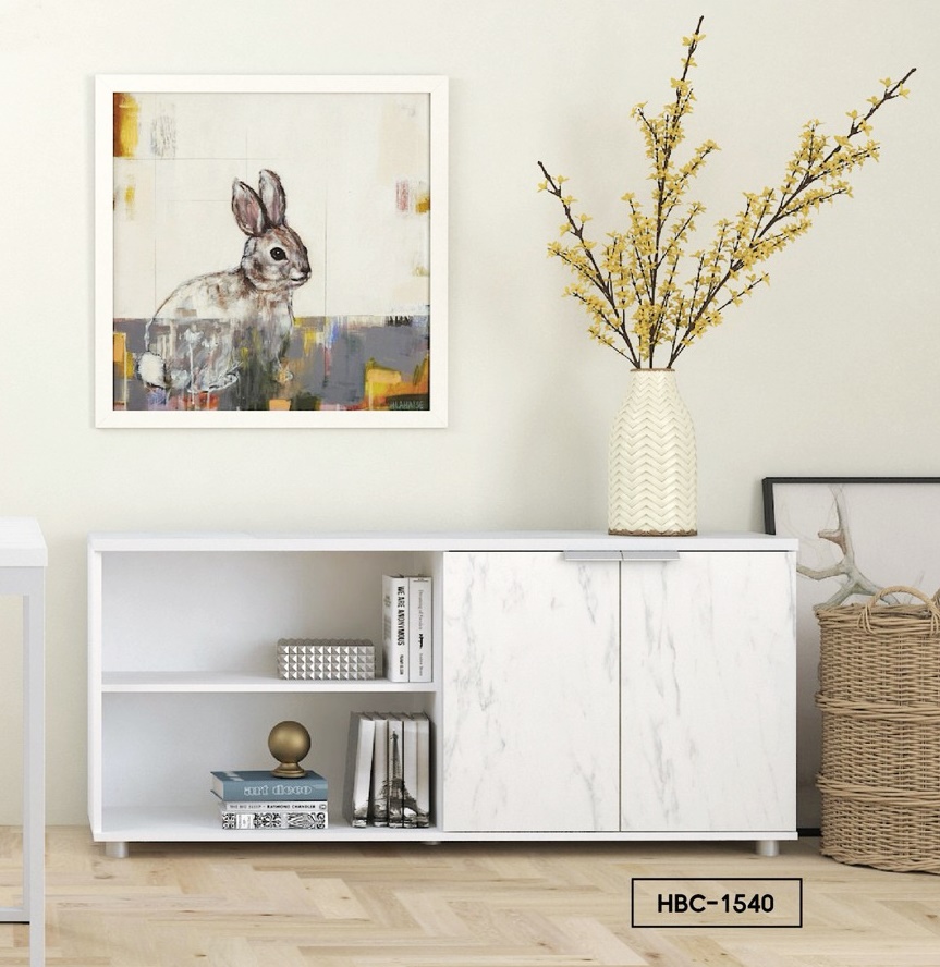 ตู้ต่อข้าง 2บานเปิด 2ชั้นโล่ง HBC-1540 (สีขาว/ลายหิน)