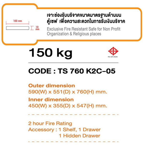 ตู้นิรภัยกันไฟเจาะช่องบริจาค