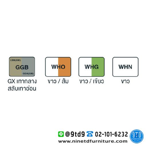 - มีให้เลือก 4 สี : เทากลางสลับเทาอ่อน , ขาว/ส้ม , ขาว/เขียว , ขาว