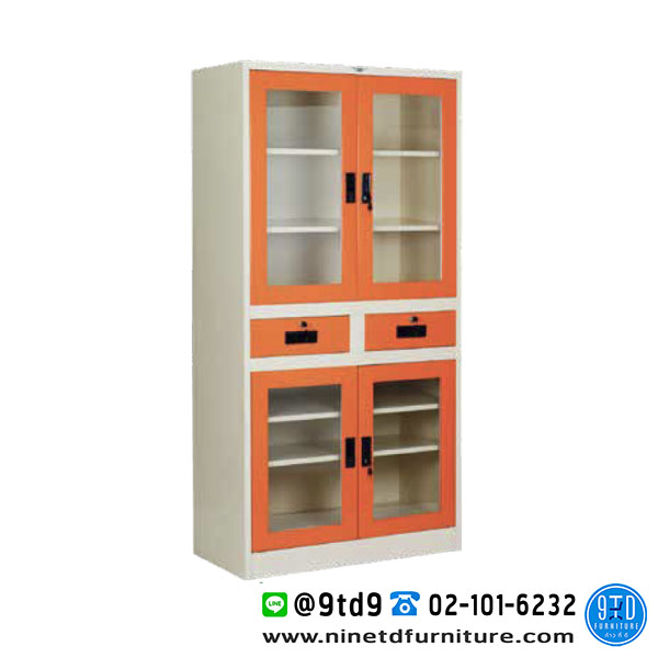 ตู้เอกสารสูง 4 บานเปิด มีลิ้นชัก บน-ล่างกระจก 3 ฟุต SC3F4P02