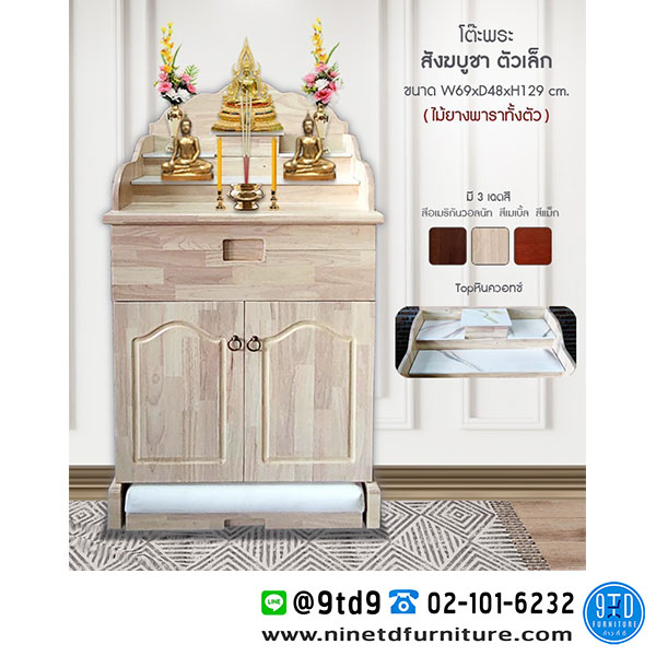 ตู้พระไม้ยางพารา รุ่น สังฆบูชา ตัวเล็ก ขนาด 69 CM. (ชั้นวางพระหินควอทซ์)