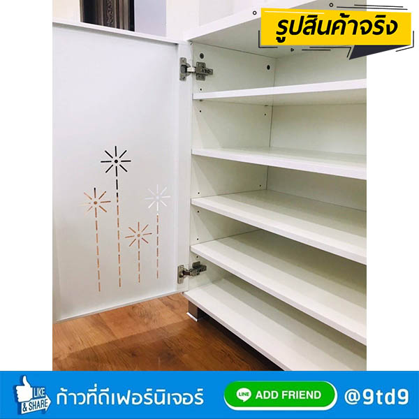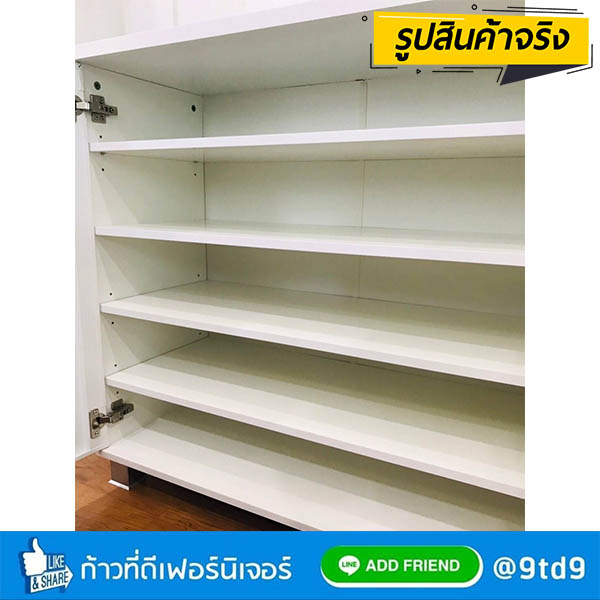- แผ่นชั้นทำด้วยวัสดุ PARTICLE BOARD (PB.) ความหนา 16 มม. เคลือบผิวด้วย MELAMINE RESIN FILM ด้วยระบบ SHOT CYCLE ปิดขอบด้วย PVC. หนา 0.5 มม. TRIM ขอบและลบคมด้วยเครื่องจักรแบบอัตโนมัติเพื่อความเรียบร้อย