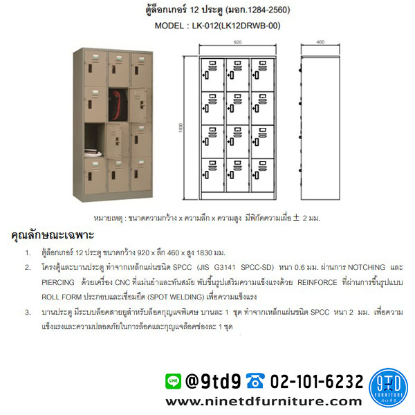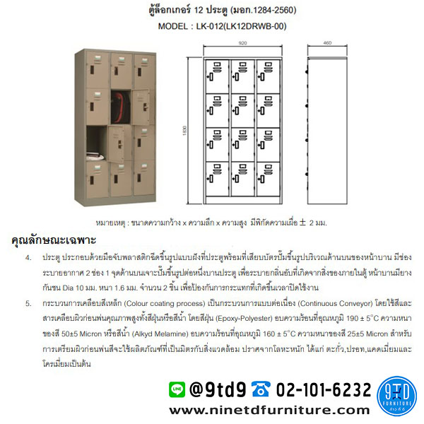 ตู้ล็อคเกอร์ 12 ประตู (มอก.) รุ่น LK-012/TY