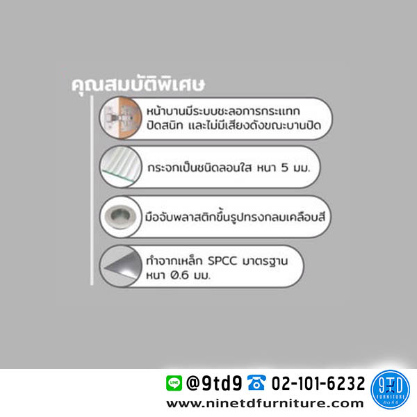 - หน้าบานมีระบบชะลอการกระแทกปิดสนิท และไม่มีเสียงดังขณะบานปิด